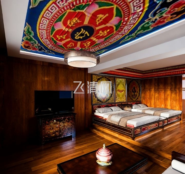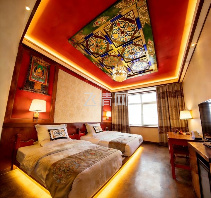 共90余间客房,三大风格:深度藏族风、轻度藏族风、现代商务风