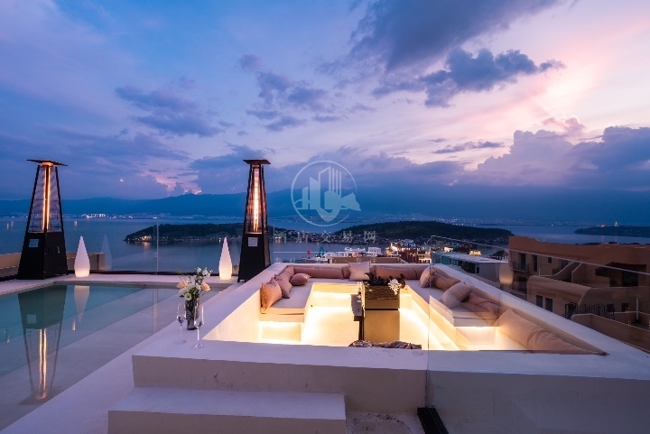 转让:圣托里尼理想邦里最顶端客栈,刚装修,车直达门口,4个公区,楼顶带网红打卡泳池,合同9年半,房租一年20万,已交俩年40万,押金20万,11间房,6个侧海景180°海景,有3个房间带浴缸。5个山景房,所有房间都有阳台。转让费200万包含1.5年30万房租,700平方,最小一间房间带阳台30平米多