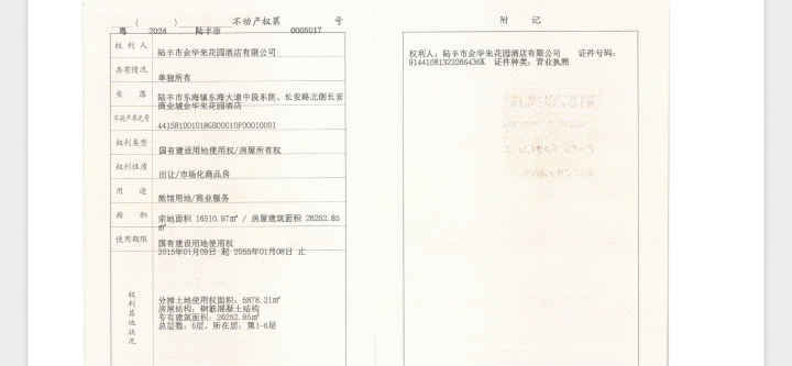 近日,位于汕尾市陆丰市行政新区核心地段的金华来花园酒店正式挂牌转让。该酒店为独栋6层毛坯物业,总建筑面积达31151.23平方米,地理位置优越,配套完善,是投资高端酒店或商业项目的绝佳选择。